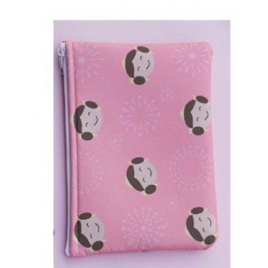 Funda portatodo con dibujos de caras de fallera.